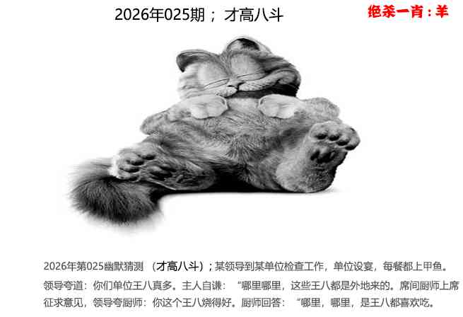 2026年第025幽默猜测(才高八斗);某领导到某单位检查工作,单位设宴,每餐都上甲鱼。
